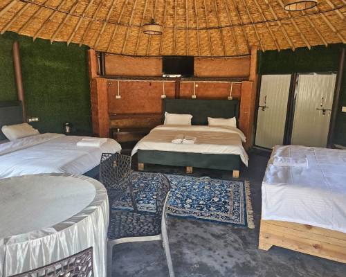 Designed for groups and families, Mittika Kutir accommodates up to six guests in a cozy, earthy ambiance. The traditional thatched roof, mud walls, and rustic décor create a soothing escape, allowing you to reconnect with nature like never before.